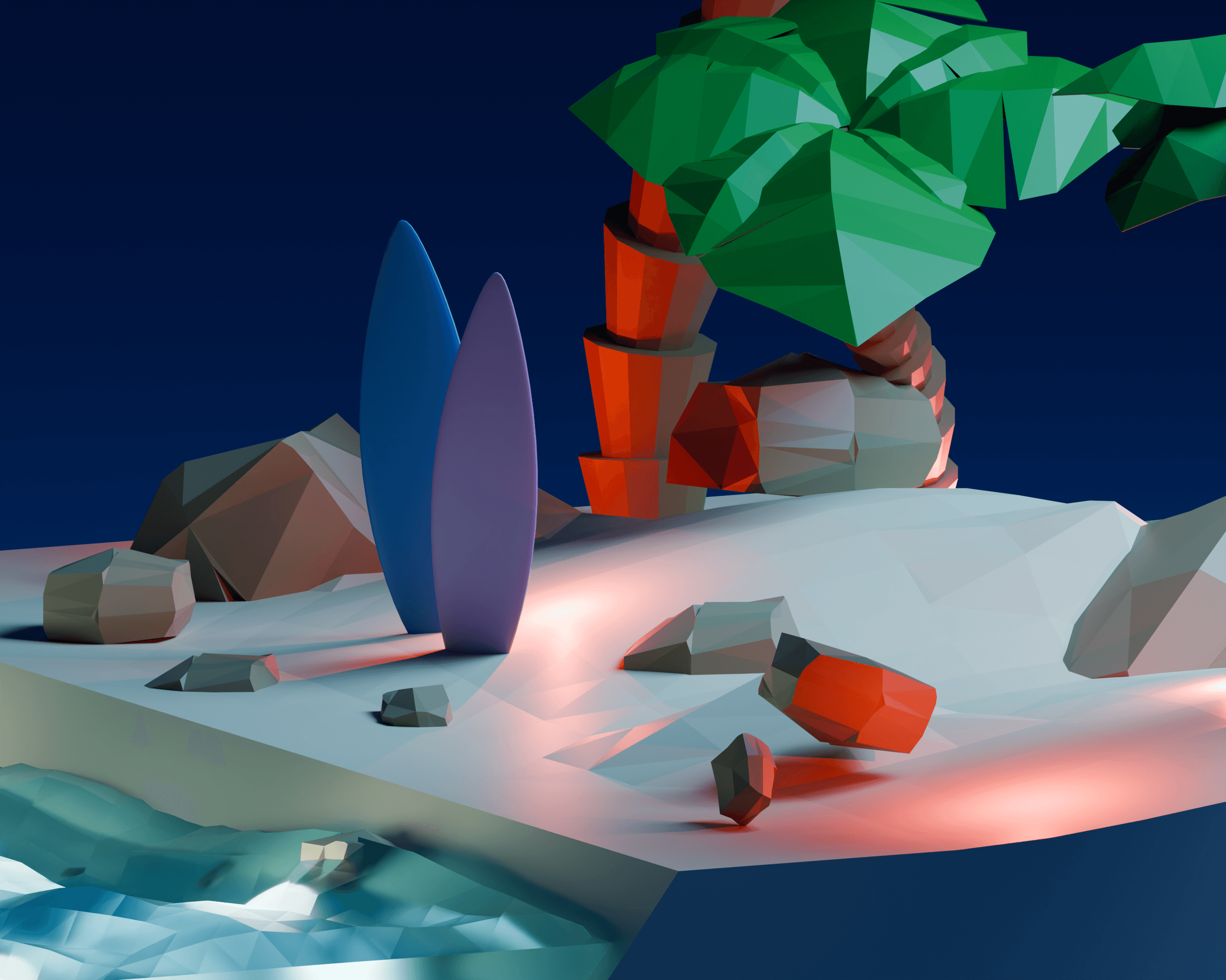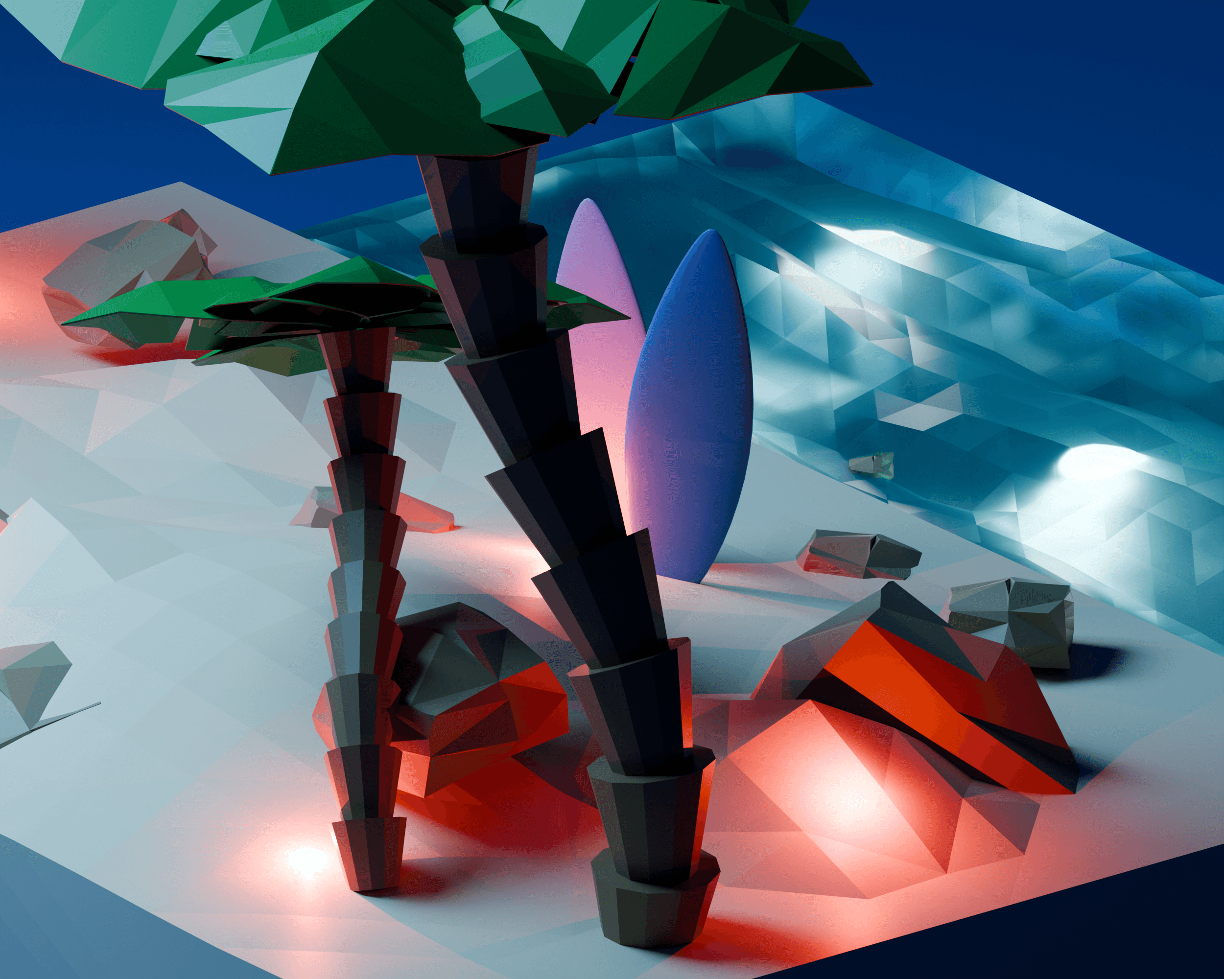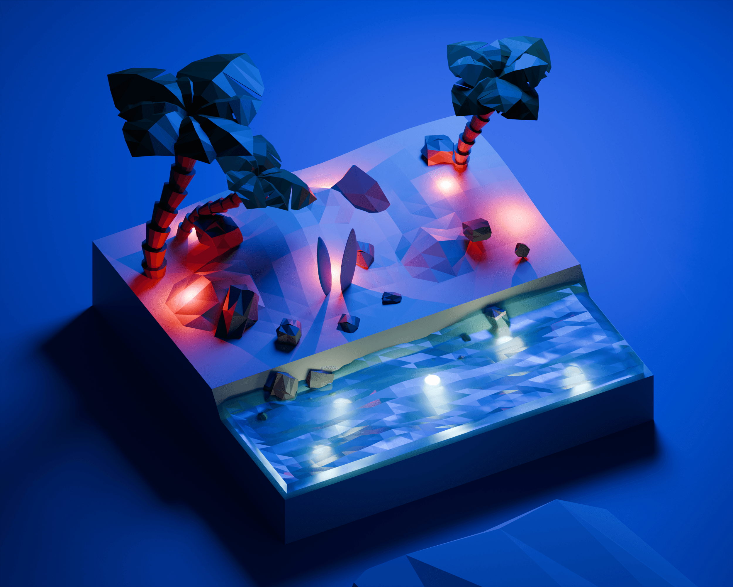 Created and rendered in Blender a blend of stylized art and vibrant lighting! 🌊🔥 #Blender3D #LowPolyArt #3DRendering