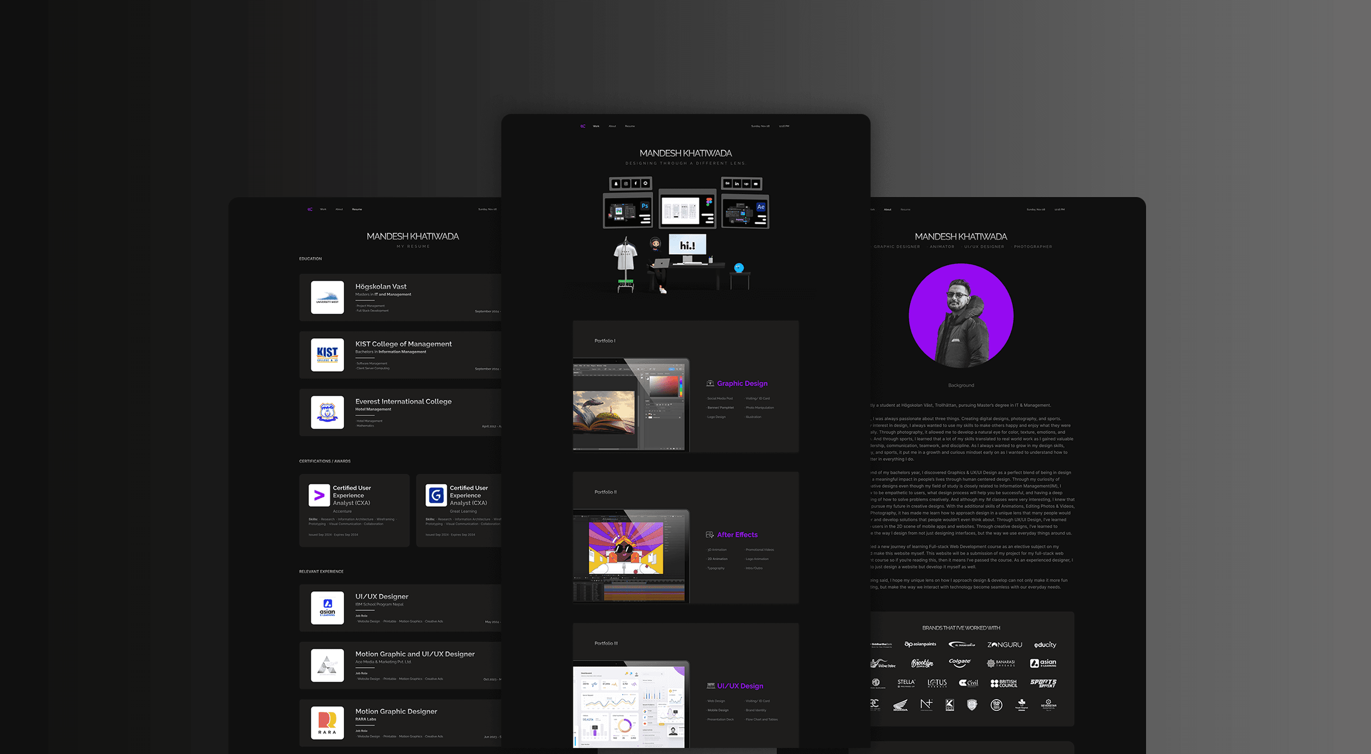 Personal Portfolio Sample for my website designed by me. Variation 1.